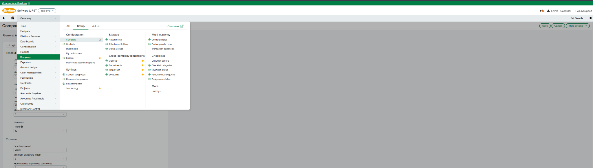 - Accounts (AR, AP, Checking Accounts, Credit Cards, AR Terms, Classes, Expense Accounts)