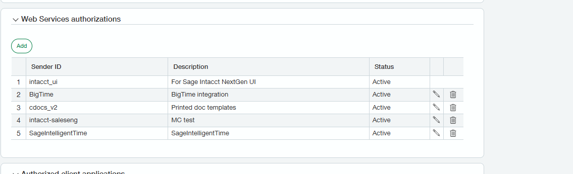- You must explicitly authorize the sender ID BigTime in your Sage Intacct company settings.