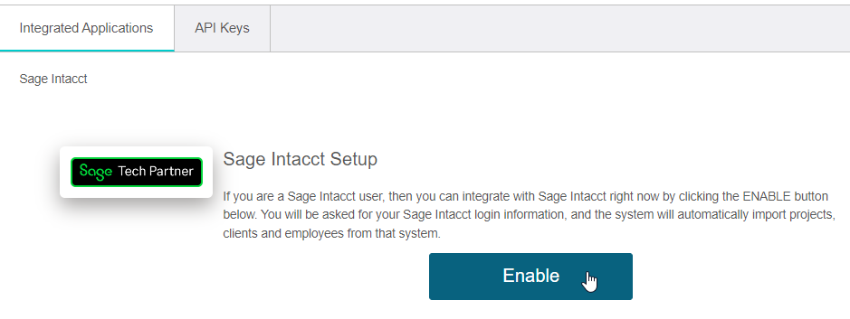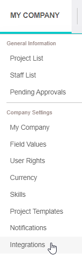 1. In BigTime, go to My Company → Integrations → Sage Intacct.