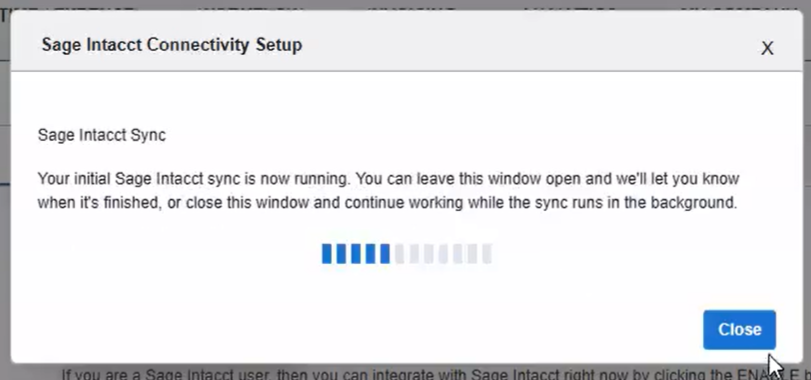 At this point, you can close the window, and the initial integration sync will run in the background until complete.