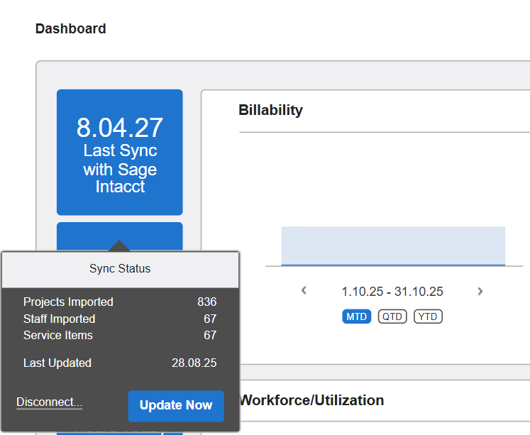 If you’ve recently changed the password or status of the Web Services User, you’ll need to reconnect the integration from BigTime. Disabling or modifying this account will pause synchronization until reauthorization is complete.