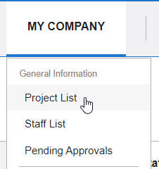 1. Click MY COMPANY...PROJECT LIST, which will take you to your project list.