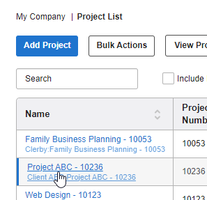 2. Find a project you want to create another custom field for. In the example below, we’ll click on ABC Studios from our list of projects, since we’ve created one custom field for this project and want to add more.