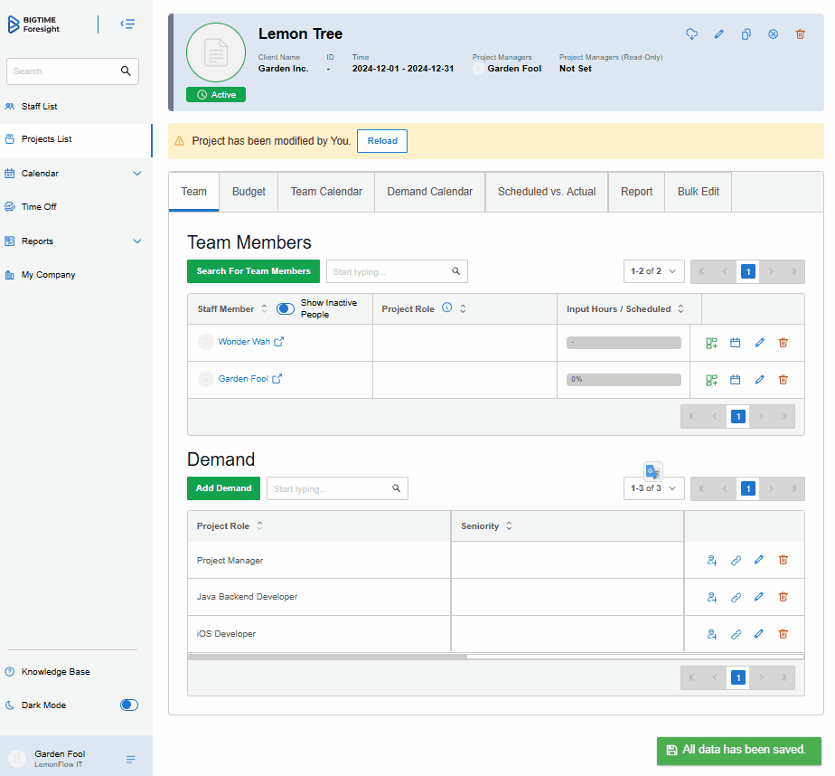 Result: All assigned hours are included in utilization and overbooking calculations, affecting the staffer’s availability for other tasks.