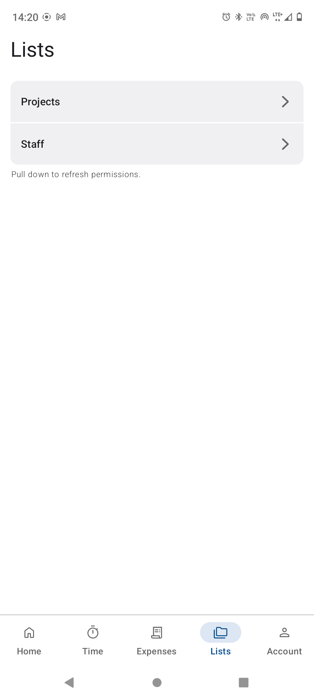 The Lists screen, represented by a Folder icon, is where you can view lists of your firm’s projects and staffers. In order to see these lists, you’ll need to have certain staff and project-level permissions, which are configurable in the BigTime core. To learn more about how to use the Lists view, read this article.