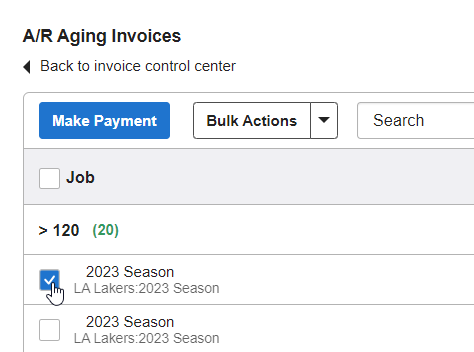 Step 2: In either of these screens, find the invoice you’d like to mark as paid. Check off the checkbox to the left of the invoice name.