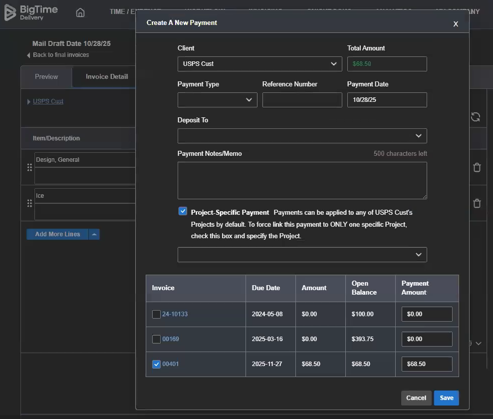 Although it’s rare, it is possible that a payment doesn’t come over when you import it from QuickBooks into BigTime. This could be due to a bug in QuickBooks, the Sync Agent, or in BigTime. If that’s the case, there’s a workaround that allows you to manually mark those invoices as paid once they’re in BigTime.