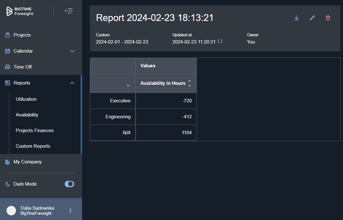 In BigTime Resource Management, you can quickly check your employees’ availability by creating an availability report. This report is vital for controlling, predicting, and restructuring your firm’s resource planning strategy.