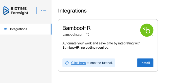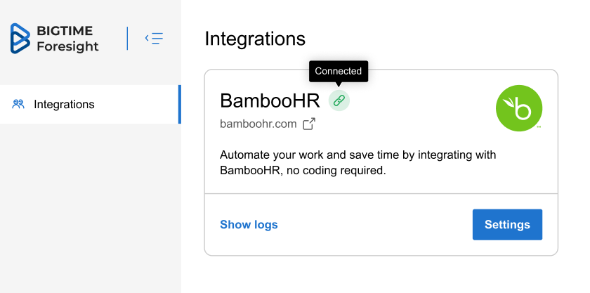 | Direction Of Integration | BambooHR ➡️ BigTime Resource Management |