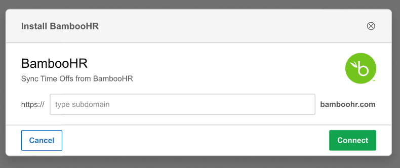 Log in to Administrator Role in Resource Management ▶ Go to the INTEGRATIONS Tab ▶ Find BambooHR Integration Tile ▶ Click INSTALL Button ▶ Type the right subdomain ▶ Click Connect Button ▶ Once redirected to BambooHR, confirm integration ▶ Return to Resource Management and click SETTINGS Button ▶ Configure Integration ▶ Sync Time Offs