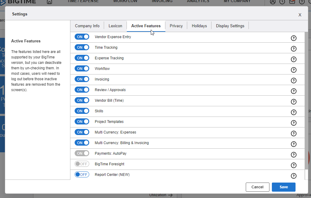 Once you’ve been set up with BigTime Wallet, you can enable AutoPay for your clients by first going to MY COMPANY…MY COMPANY from your main navigation bar.