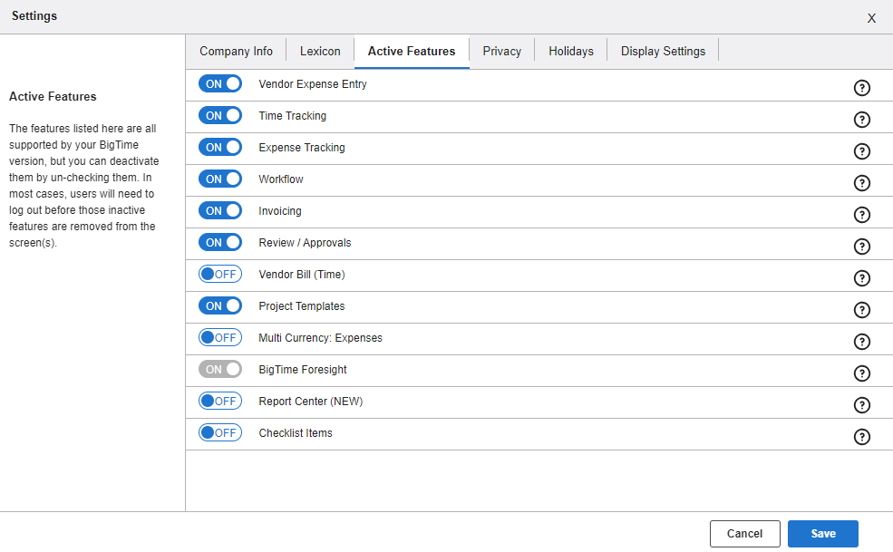 When it comes to managing skills, BigTime users have two options: use BigTime’s built-in skills matching tools, or adopt the BigTime Resource Management module. Resource Management makes sense if you want a more comprehensive solution for managing allocations, calculating capacity and assigning specific skills to staffers. It has the added benefit of tracking time off requests. This means you’ll be able to factor vacation time, sick leave, parental leave and other types of time off into your staffers’ capacity. Resource Management can be activated by your firm’s customer support person.