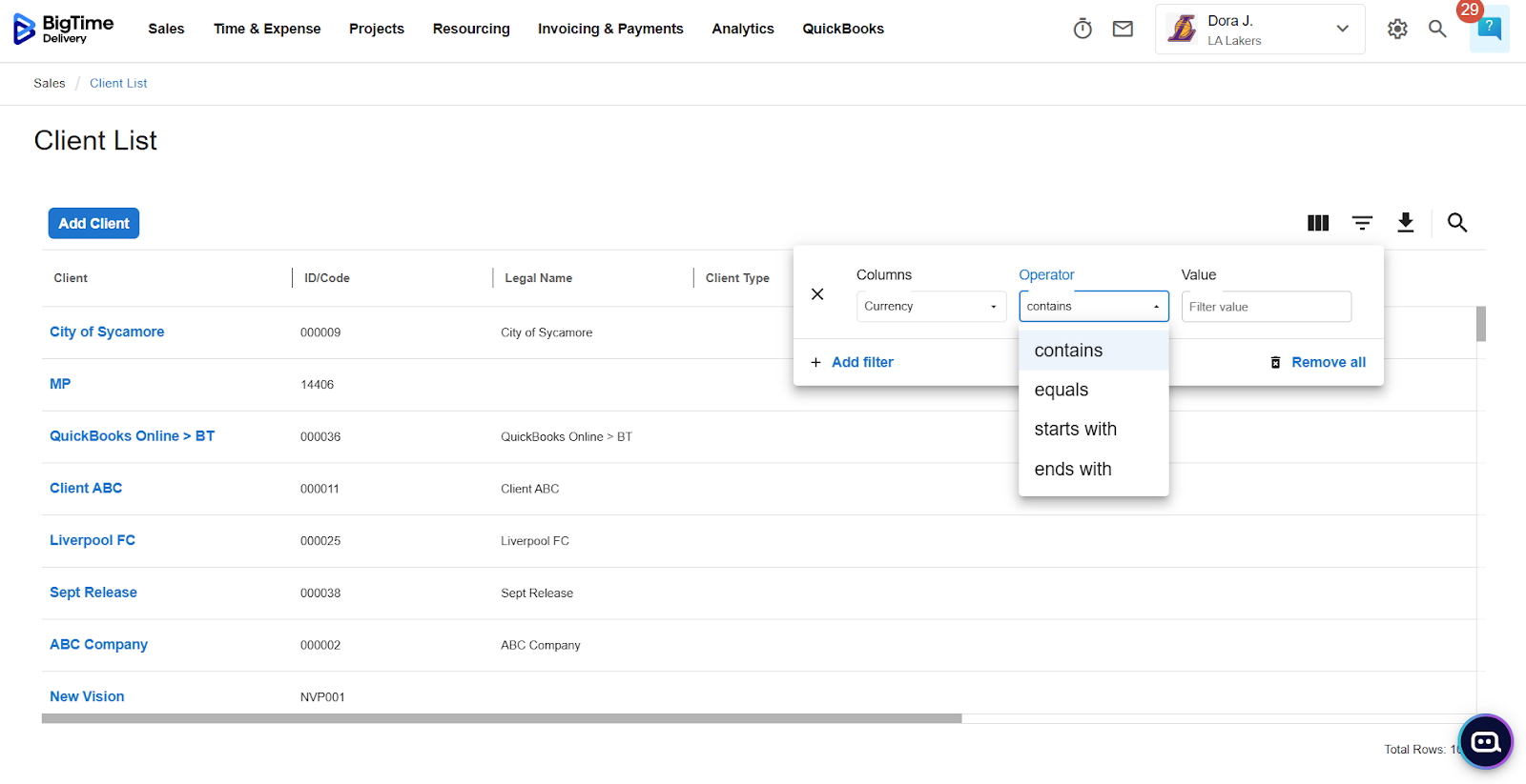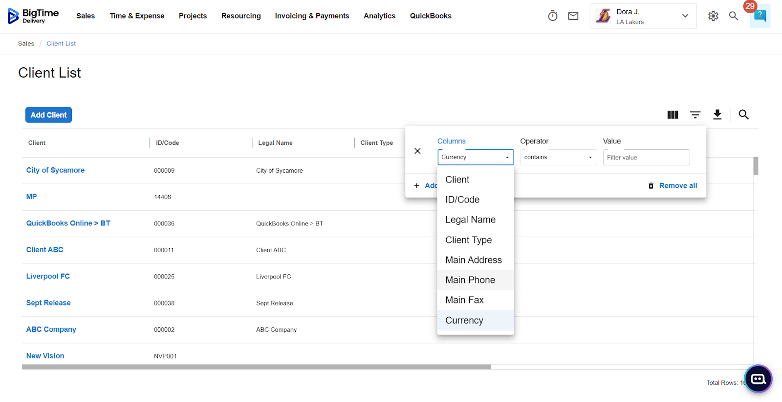You can now manage which columns appear in the Client List and apply advanced filters.