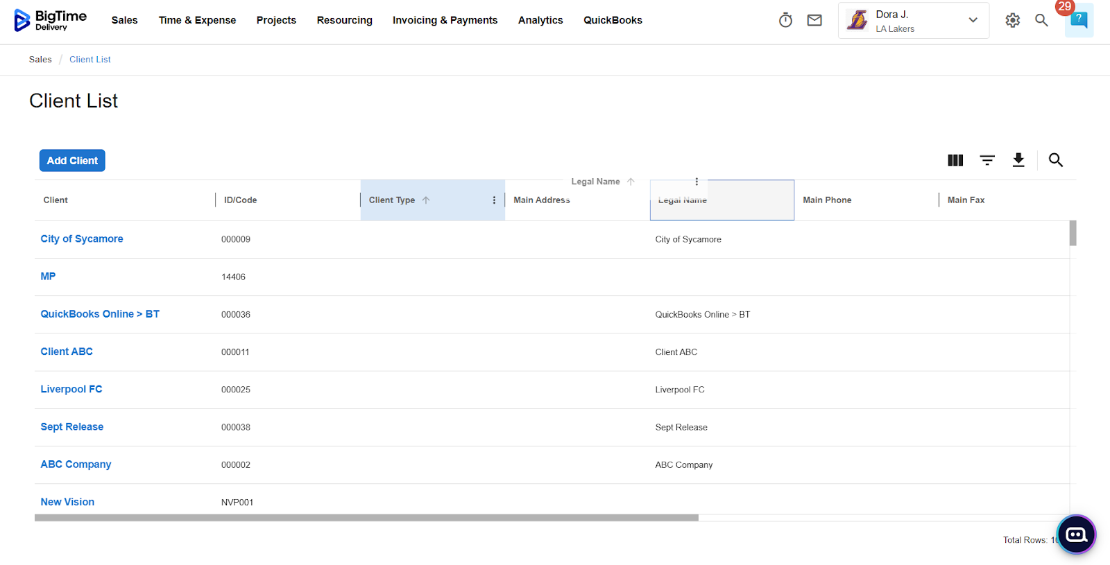 The Client List in BigTime provides a centralized view for managing, and updating your client database. You can now easily create new clients, manage their contact details, and update client records even before a project is created. All in one place. Whether you're managing ongoing projects or preparing quotes, this view helps you: