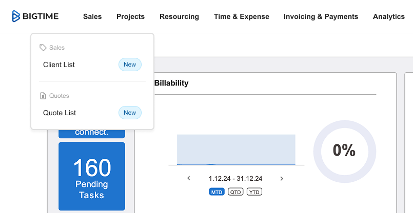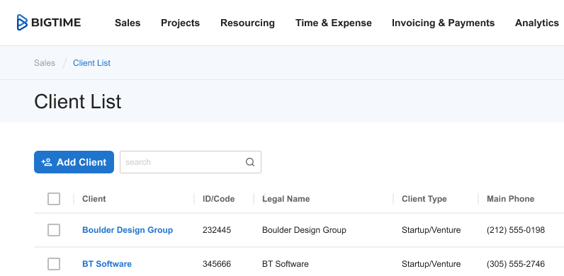 Explore BigTime Client List Tab below with an interactive demo. Click Get Started to navigate seamlessly through the interface and discover a feature. You can restart the demo at any time.