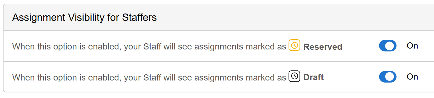 With this setting, you can decide if staffers see Reserved or Draft assignments in their calendars.