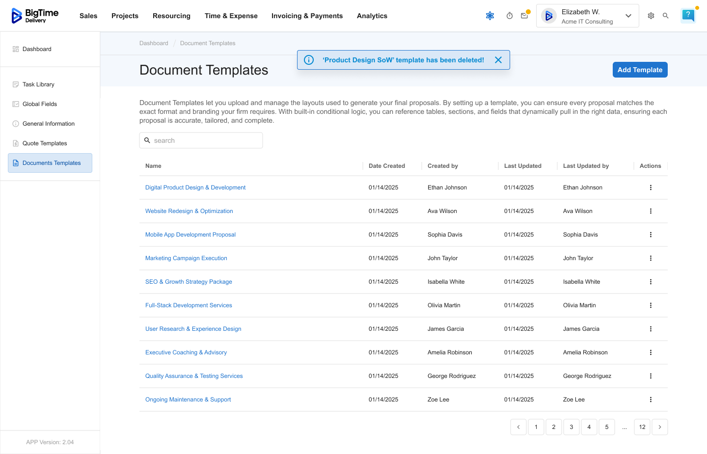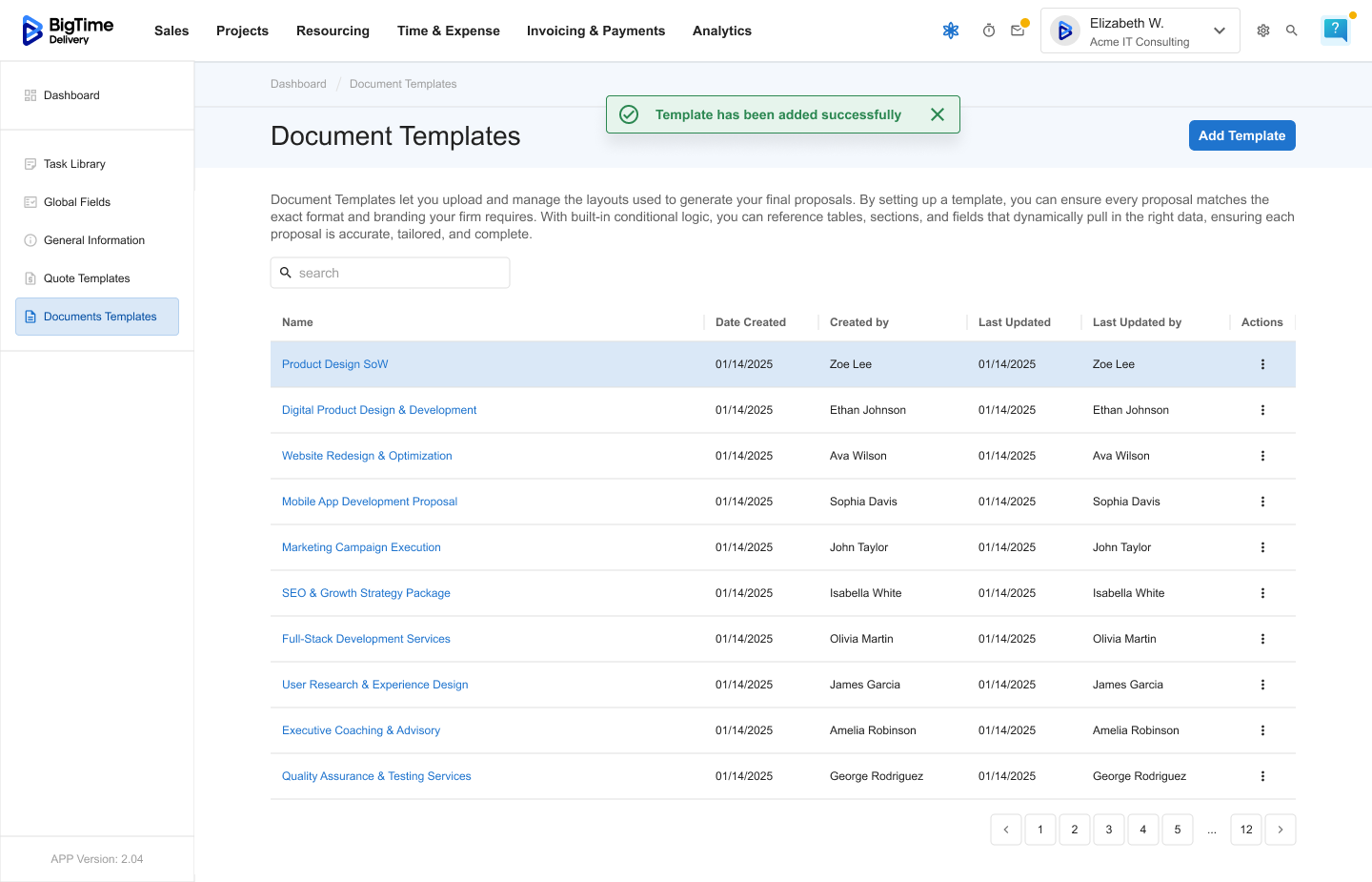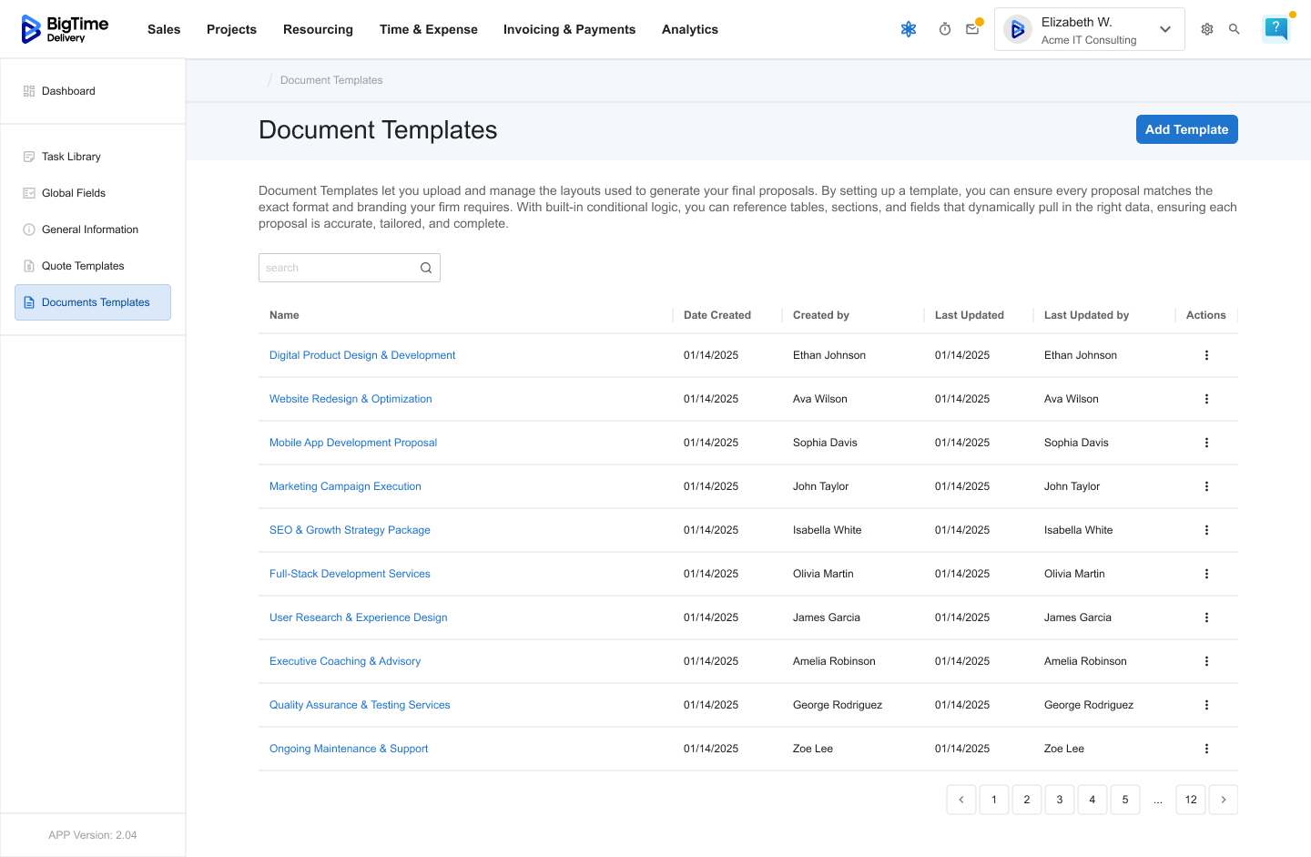 Managing Document Templates is an admin-level feature in BigTime Quotes. Only users with the appropriate permissions can create, edit, or delete document layouts used across the organization.
