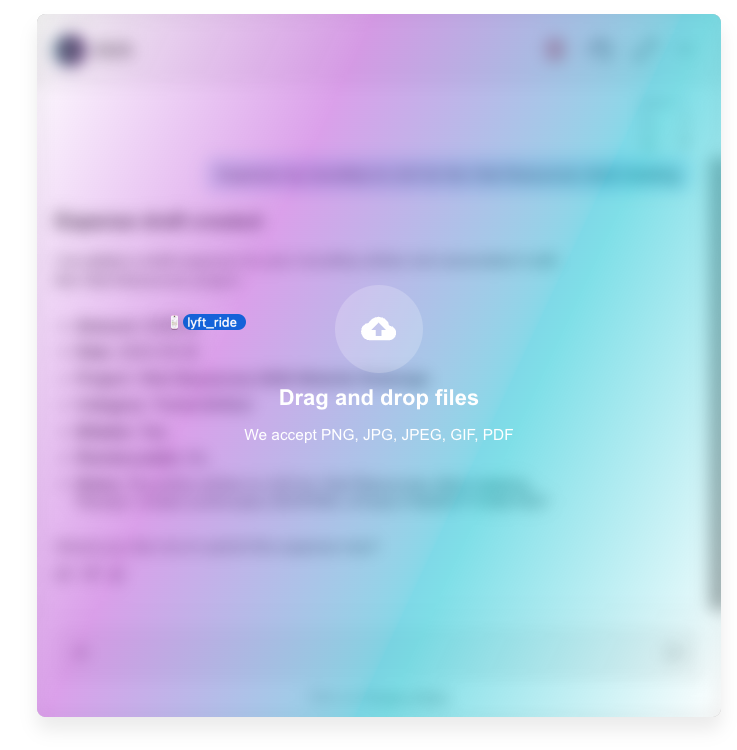 - Dragging and dropping receipt files into the chat